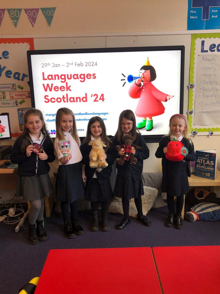 Cross Arthurlie Primary School held a few whole school projects to celebrate such as design a logo for our new twitter @XALanguages, a Kahoot quiz with facts about global languages and our teachers and a guess the language book quiz. P4 also explored the theme of LWS through their learning on Deforestation. We discussed how important it is to listen as well as talk when we are communicating. We had numerous homework challenges where pupils had to explore the origins of items in our houses.